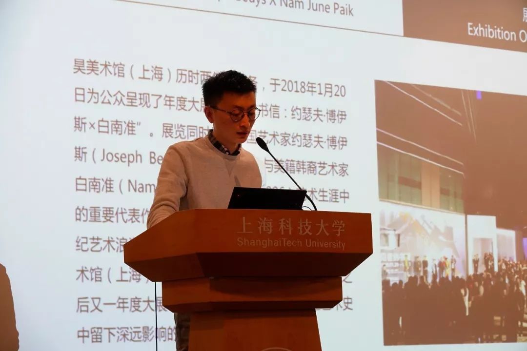 3月8日下午,昊美术馆主策展人陈澈和助理策展人尹颋彦来到上科大,与大家分享了昊美术馆目前正在举行的当代艺术特展——“见者的书信:约瑟夫·博伊斯×白南准”,同时把二者晦涩的作品放在各自当时的语境中,慢慢连成了贯穿其一生的“句子”。千变万化的“字”难以捉摸,但当从“句”的维度便简单了许多。两位策展人便是通过这种方式带我们走到当代艺术盛行的上世纪,与大师谈笑风生。