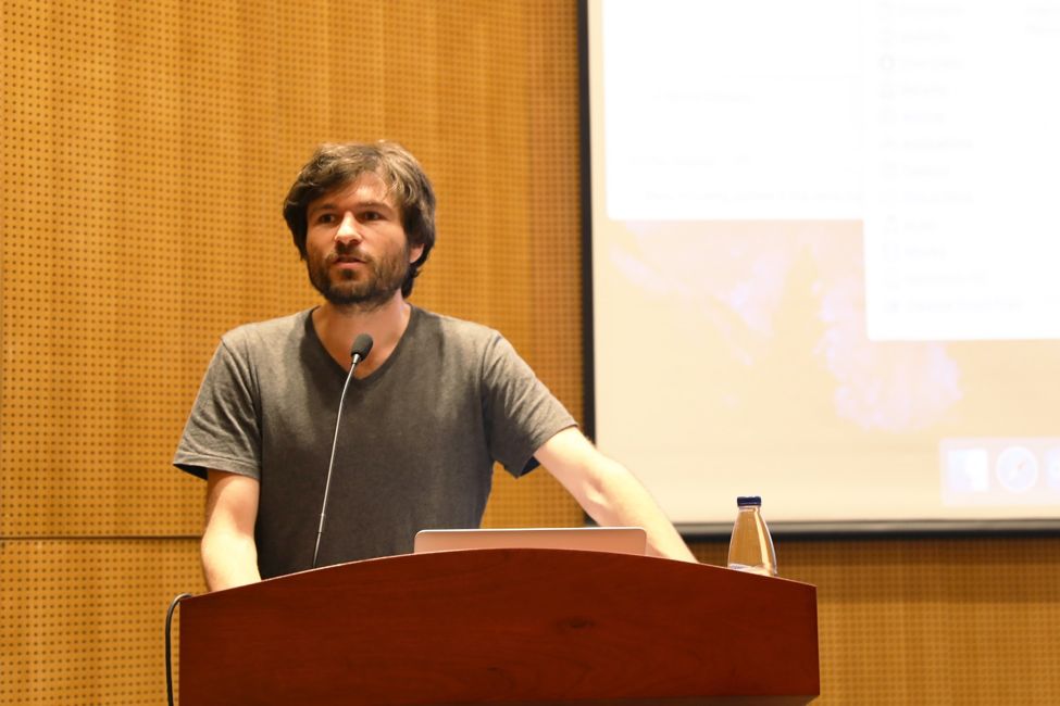 晚上6时许,《当人工智能遇见艺术》讲座在人字楼报告厅举行。热情的上科大师生和社会各界人士早早等候在场。主讲人Gene Kogan从人工智能的兴起,描述了机器学习在各个领域极具前景的新应用。接着介绍了其团队所做的部分案例:Music Instrument(digital)、Body Language、The Book From Sky。 Gene Kogan通过这一个个生动真实的例子,像大家形象地展示了人工智能与艺术的结合点。在案例展示之后,Gene Kogan从理论上向大家讲解了机器学习和神经网络的实现原理,他的讲解深入浅出、生动有趣,引起了与会观众的热烈反响。大家在Gene Kogan的带领下,总览了机器学习的奇妙与艺术的迷人魅力。