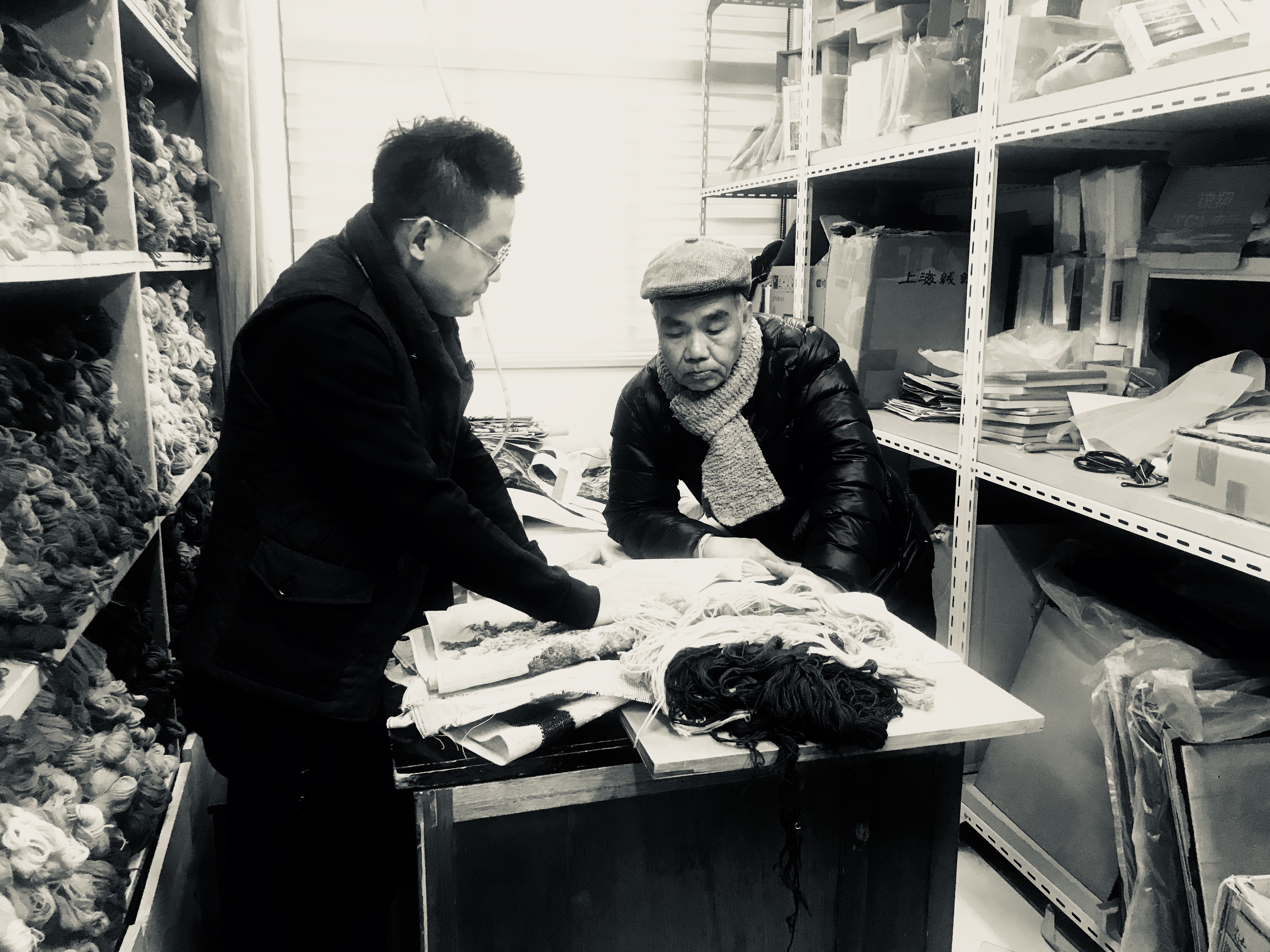 他们是一对父子。包炎辉,非物质文化遗产项目上海绒绣传承人,中国高级工艺美术师,上海黎辉绒绣艺术有限公司创建人。包粒是一名广告出身设计师,2011年创立Queensback高级艺术设计品牌,致力于在传统与创新中不断探索,通过现代的设计手法带来新的突破革新。