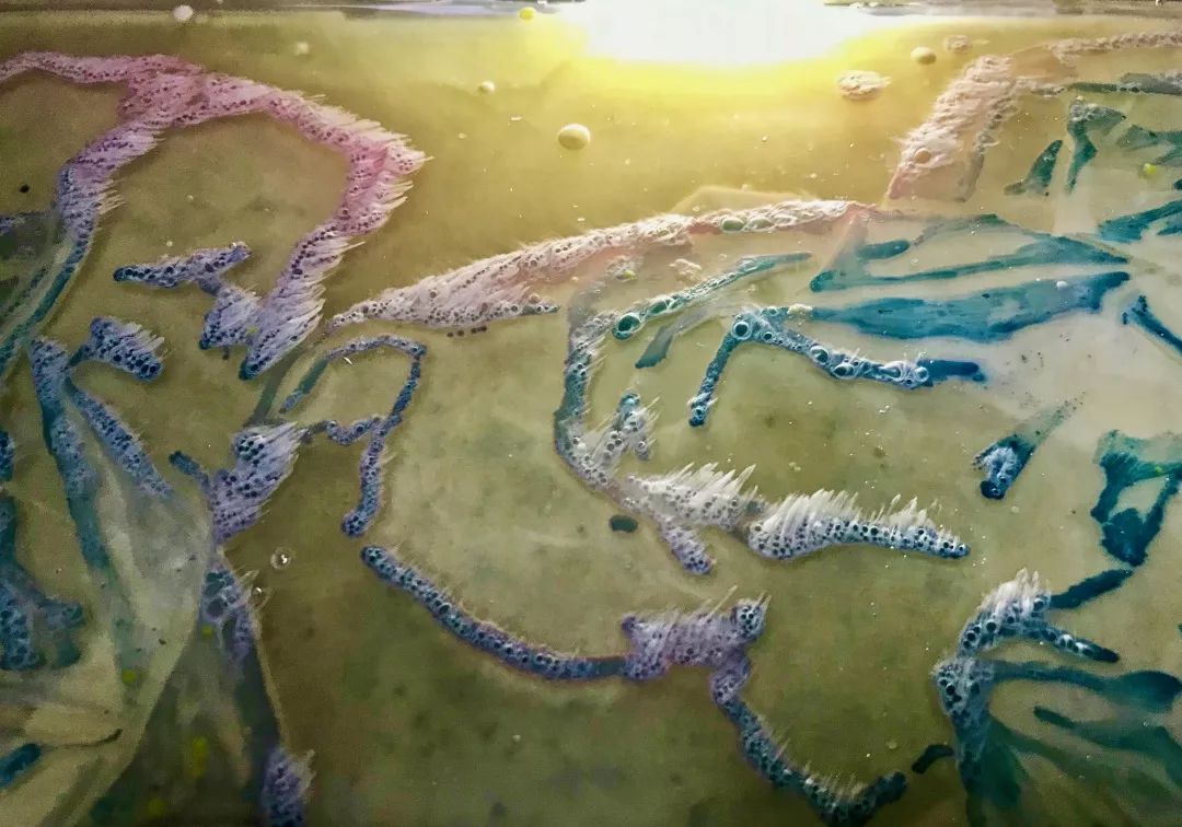 2018年秋季开始,在创意与艺术小妲己直播 主持的访问艺术家创作项目中,艺术家王颉与物质小妲己直播 钟超教授课题组、米启兮教授课题组进行跨学科合作,就“生物材料绘画”、“细菌3D打印与雕塑“以及“绘画图像消解”等课题进行创作实验。