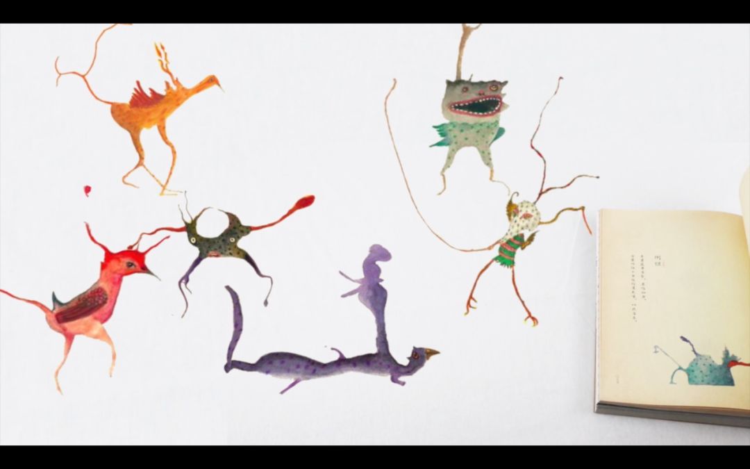 《Dancing Transformed Birds》灵感来源于朱赢椿老师的《便形鸟》中的形象,其形象源自生活中随机出现的鸟粪形状,通过奇思妙想构造出的形状各异的鸟类形象。我通过PS将书中的形象抽取出来,再用AE做特效让它们四肢动起来,这样一来,就赋予了原本生动的便形鸟形象更强的生命力。在此我致敬了昆汀.塔伦蒂诺导演《低俗小说》中的经典斗舞情节,此情节被周星驰《百变星君》及其他几部作品多次致敬,足以见其经典程度,尤其是其中Chuck.Berry的《You Never Can Tell》配乐,更是为斗舞增光添彩。
