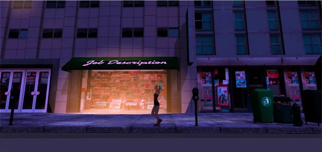 主要讲述的是深夜回家的主角一边听歌一边走路,不小心摔进了垃圾桶的故事。整个作品看似欢快,实际上是包含了黑色幽默的成分。