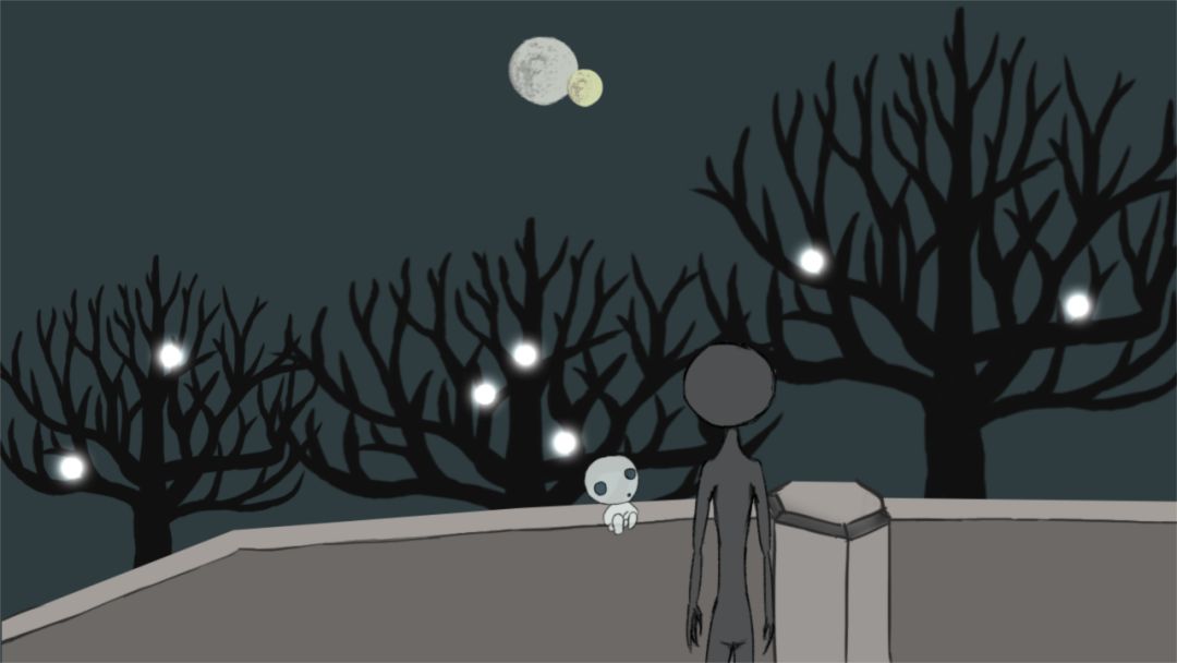 角色和场景的设计,参照了《幽灵公主》和《1Q84》里的概念,这里的精灵和小小人概念类似,也是不区分善恶的概念。