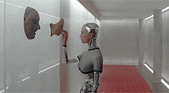 《机械姬》里的智能机器人Ava具有独立思考的能力,在剥去少女皮囊的伪装后,透明的精细机械身体完全暴露出她的非人性。