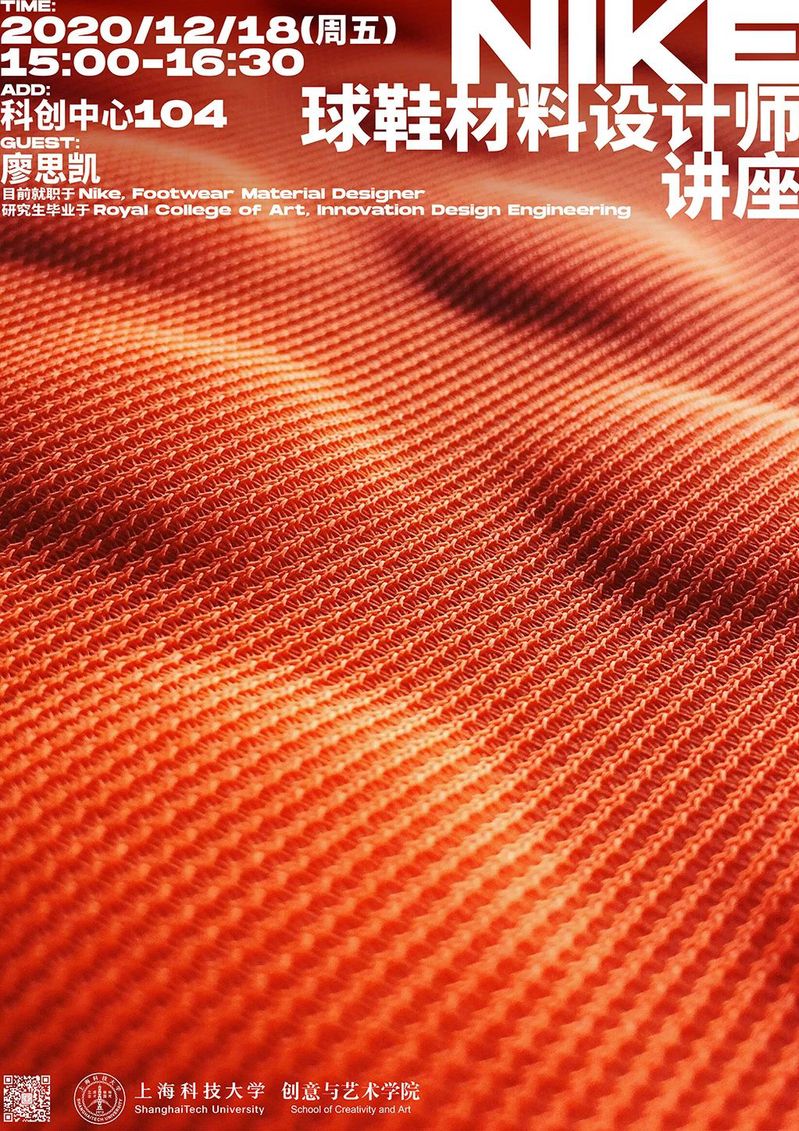 本次活动,我们有幸邀请到了耐克鞋类材料设计师廖思凯老师,与我们分享他的设计之路和体验。廖老师本科攻读物理学,毕业后转向创新设计工程,在设计行业拥有五年以上的工作经验。