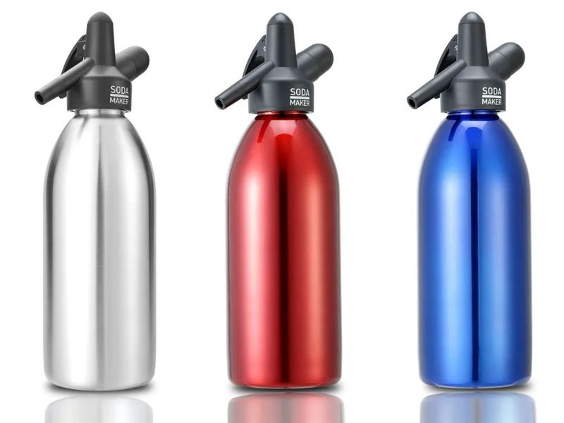 这款苏打水机可以将冰块与饮料混合,完美地发挥亨利定律,制作各种气泡饮料。当温度接近0℃(32°F)时,溶解在液体中的二氧化碳气体体积比20℃(68°F)时增加了一倍,因此可以制作出更高浓度的碳酸饮料,供保健、休闲、护肤使用。优质的不锈钢瓶可以承受很大的压力,具有很好的卫生性;带有抗菌添加剂的塑料瓶头具有两道安全压力控制功能。这是一款获得SIAA专利认证的抗菌产品。