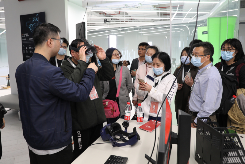 智能虚拟设计实验室(DIV)向来访嘉宾介绍智能虚拟设计及VR游戏体验