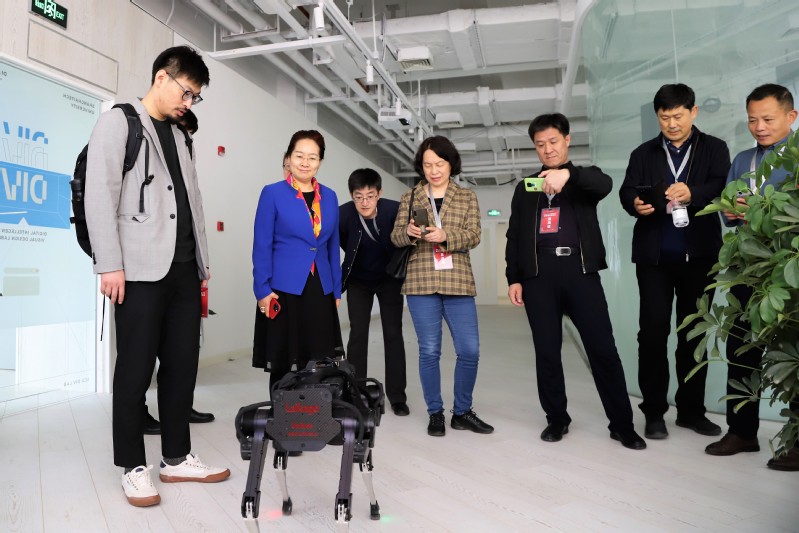人工智能与数字艺术实验室(AIDA)的机器狗(四足机器人)迎接各方来宾
