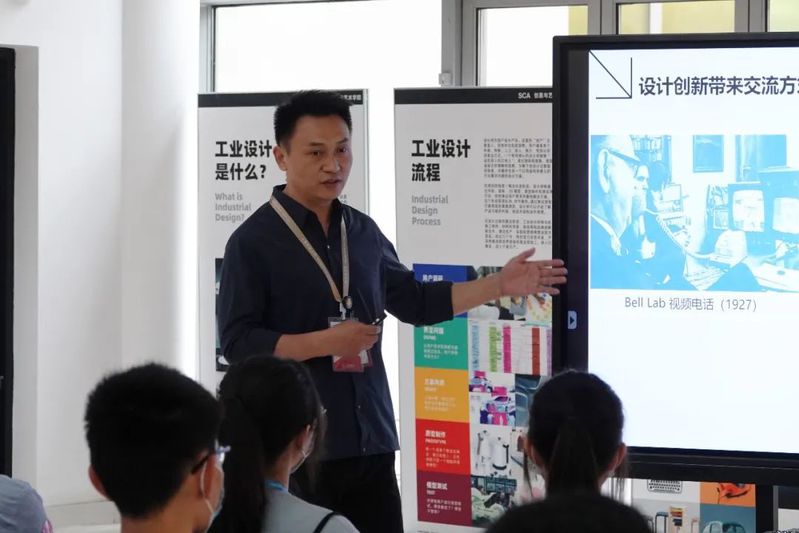 在为期七天的校园开放日中,每一位以报考智能设计为志愿的学生都体验了“设计师的第一天”,与智能设计专业的老师一起就生活中的产品进行了探讨。在讨论结束后,智能设计专业的教师还在智能设计教室走廊中向学生们开起了小灶,介绍多个经典的工业设计作品。