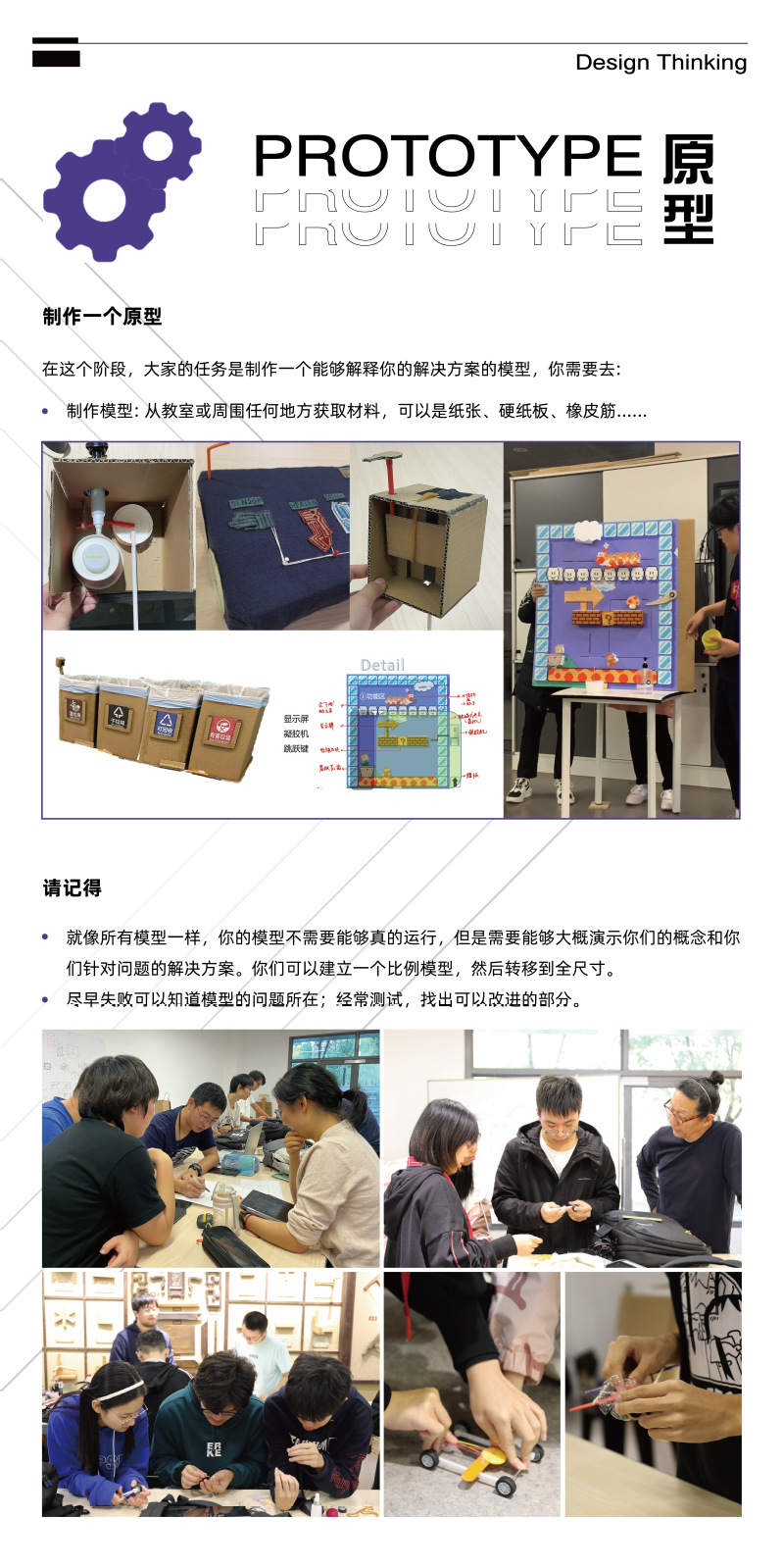 本学期参与的设计思维课程的学习简直是来到上科大的惊喜,本以为会是单纯分享设计过程的课程,可能只是单纯的上课听讲,却没想到我们能有这么高的参与度,将自己各种天马行空的想法与同伴交流,与老师交流,交流的同时又不断的拓宽着我的思维,不拘泥于现实,但是却又在为着现实服务。借助老师教授的“persona”以及各种方法来找到具体应解决的问题,并针对问题通过多角度的比较,找到最切入要点的solution。之后通过自己的双手将脑中的模型转化为现实中的实际的模型,可能从小到大做的手工都没有这么频繁过,再之后将自己想法分享给大家,这真的是一个很奇妙的过程。DT课真的让我收获到了很多,也很感谢老师给我们带来的这些。