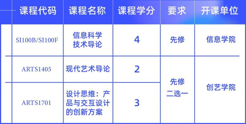 曾修读过ARTS1407《用户体验与创新设计》、ARTS1408/ARTS1412《数码产品设计》的同学,学分可计入辅修专业相关学分中。