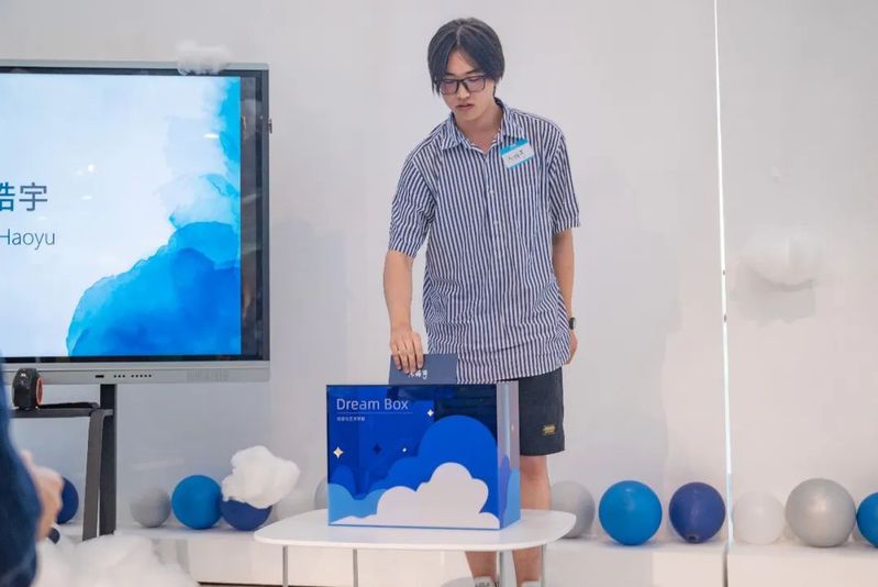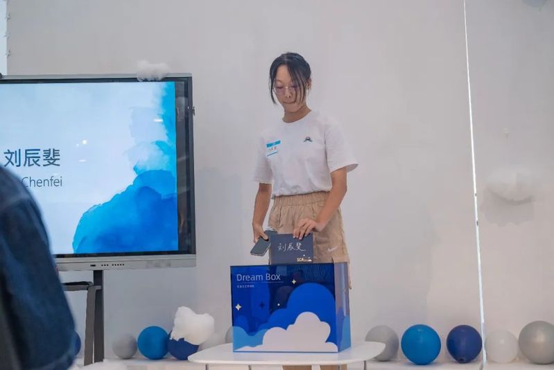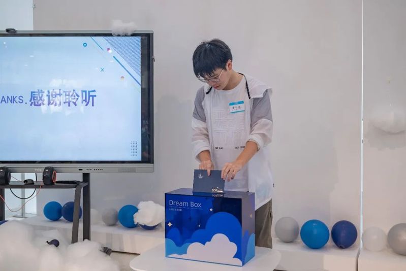 在自我介绍后,每一位学生把写给四年后自己的信投进“Dream Box”信箱。深蓝的信封承载着学子的梦想投入天空的环抱,愿四年后的他们打开信封时面带微笑,为这四年一路走来的自己鼓掌叫好。
