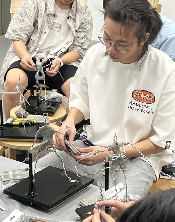 第三部分课程立足于“想象与细节”主题,引入了偶角色的制作教学,老师亲自示范基本流程和技法,同学们在课堂上积极动手参与,在实践与摸索的过程中,学习角色形象多元化的塑造方法。至此,学生们对角色设计有了完整的设计学习和创作体验。从而在平面呈现的基础之上,提升立体塑造的思维和能力,将角色创意从概念落实到模型。