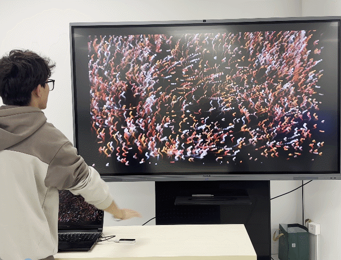 这次学了很多和传感器结合的进阶案例,非常有趣但也有一定难度。在学习张老师和江老师一天的课程后,我也做出了一个自己比较满意的可互动生成式视觉作品,也让我对TD这一工具产生了更浓厚的兴趣。