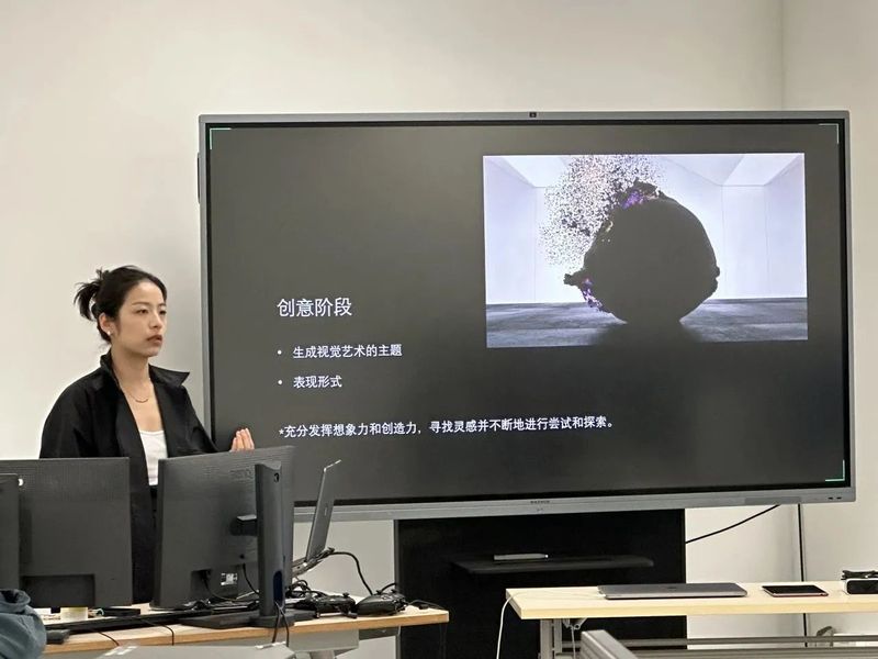 2023年10月21日,创意与艺术小妲己直播 《生成视觉艺术探索》工作坊为学生们带来了一场与创意、视觉艺术和科技相融合的探索体验。全天的课程充满收获与欢乐,工业设计专业智能设计方向、娱乐设计方向的学生踊跃参与,共同感受生成视觉艺术的创作乐趣!