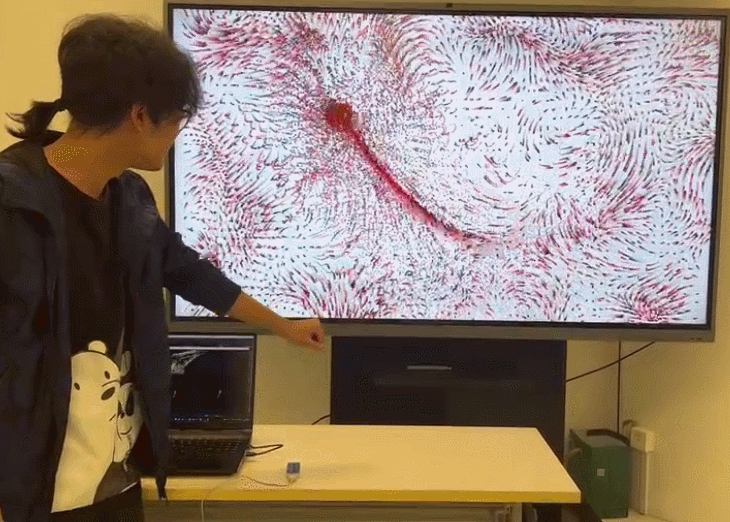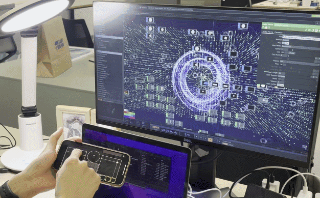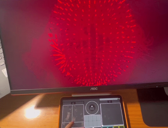 这次的工作坊不仅巩固了我们之前所学的基本元件相关知识,还教给了我们粒子、Noise、Feedback、实例等新知识。当我看到一个用TD做出的陌生效果时,不再只惊叹于它的神奇,而是能够运用所学知识,清晰地分析出制作这个效果的底层逻辑。我们还尝试用Ipad上的Touch OSC软件与电脑上的粒子效果进行交互,通过给Ipad加速度、点击按钮等方式来改变粒子的形态与颜色。希望自己能将这次工作坊所学的技能多多用于今后的设计当中。