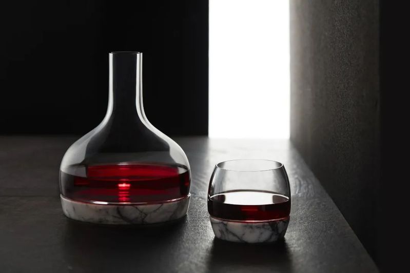 The design of the Chill series inherits the past and the present. Just like the ancient tradition of using stones cooled in river water to cool whiskey, the marble base is designed to be cooled in a freezer to keep the drink cool, fresh and strong. The glass bottle has a special curve, which can make the liquid move naturally, thereby increasing the flavor and aroma. This glass-marble combination complements and forms a soft and wonderful curve. The spherical bottom of the glass brings a playful touch to the design, while the concave form of the marble provides a smooth and stable surface for the glassware.