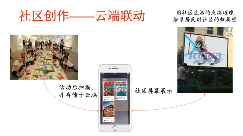 This group of solutions establishes an online platform by linking display screens in communities, streets, shopping malls, etc., and realizes interaction with the display screen in the cloud, allowing users to submit articles to the platform on the mobile phone, and the platform distributes the submitted content for display on the terminal display, thus Increase the emotional connection between residents and Zhangjiang and enhance the sense of belonging.