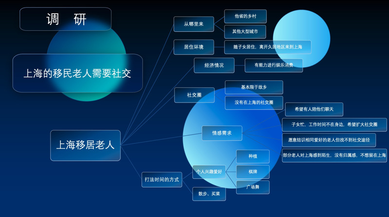 Most of the young people in Zhangjiang come to live in Shanghai with their parents. The old people are far away from their hometown and their original social circle, and they have a weak sense of belonging to Shanghai. The subject focuses on the regional sense of belonging of immigrant elderly. After surveying more than 30 elderly people in Vanke Jade, the group found that they have social needs and at the same time they cannot find suitable places for socializing and activities. Therefore, the group hopes to solve the social problems of these immigrant elderly people by providing a place for leisure and entertainment. problem.