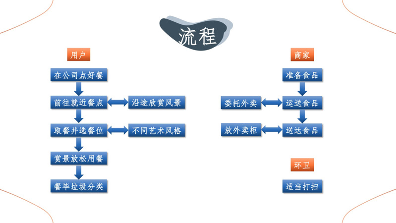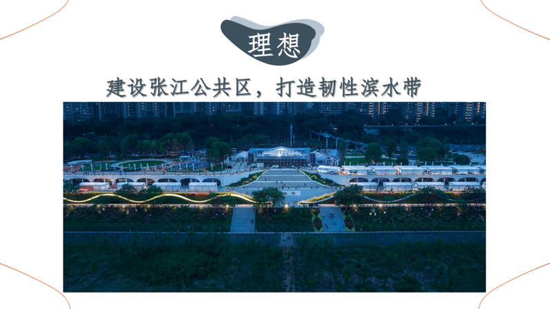A survey was conducted on the working conditions of office workers in Zhangjiang, and three problems were found: first, the centralized dining area was too crowded; second, the dining area in the office was too depressed; the centralized dining area was too far away. In response to the above problems, we have planned the solution of Delicious food•Eat all over. The plan builds an outdoor leisure art dining spot scattered around the company in the form of dots and lines, to achieve "decentralization", "de-suppression" and "de-distance", so that diners can relax physically and mentally while eating . This plan aims to build a Zhangjiang public area, build a resilient waterfront, and improve the happiness index of Zhangjiang people.