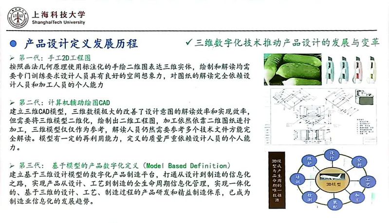 Mr. Guangping Xie first mentioned three shifts in the definition of product design. The first generation is manual 2D engineering drawings, which are hand-drawn 2D drawings to express 3D entities through geometric principles, which requires special training to complete the drawing and interpretation; the second generation is computer-aided drafting CAD, which greatly improves the efficiency of drawing interpretation; the third generation is the digital definition of products based on models to achieve integrated information management, which is the future development trend of manufacturing information.