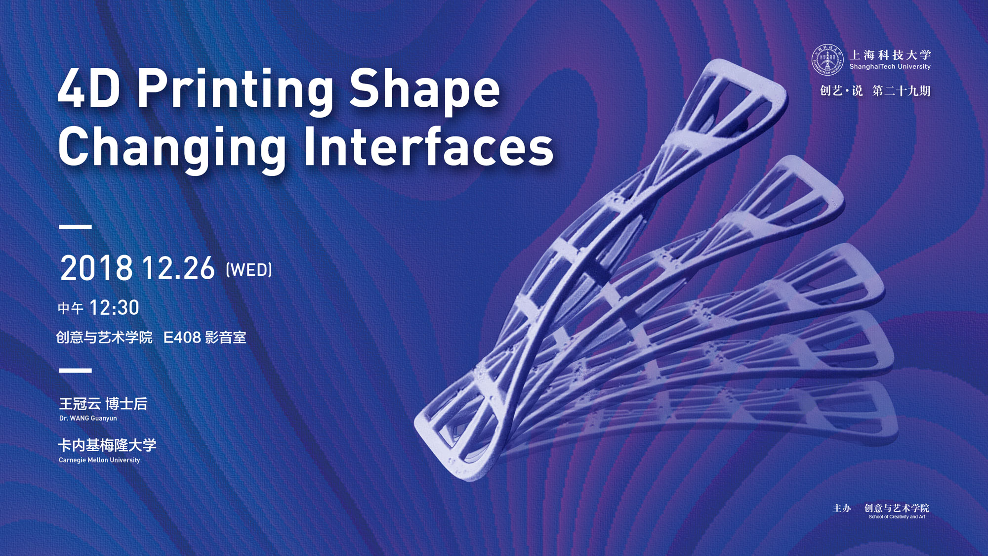 Date 12:30,Wed, Dec. 26. 2018 Venue ShanghaiTech University School of Creativity and Art E40...