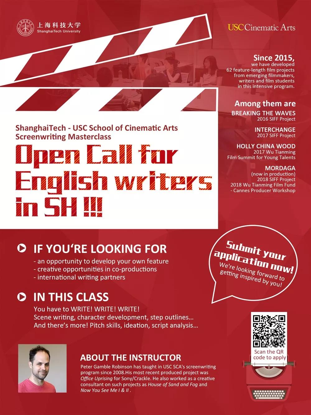Happy New Year! ShanghaiTech-USC School of Cinematic Arts Spring 2019 Screenwriting Workshop is now ...